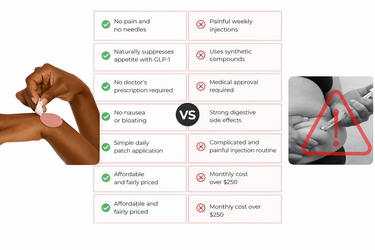 Patch or injection? Weight loss without needles, side effects, or prescriptions.